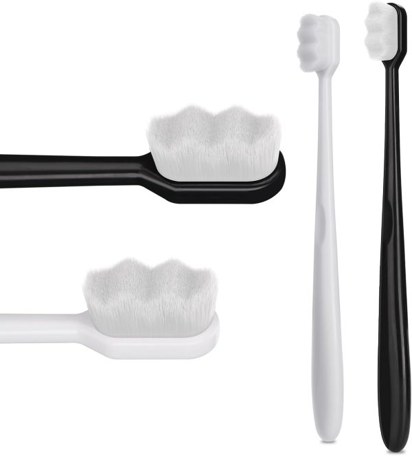 2Pcs Soft Bristle Toothbrush Portable Manual Toothbrushes Black Grip White Wave 10000 Bristles Regular Size Suitable Sensitive Gums Cleaning Men Women