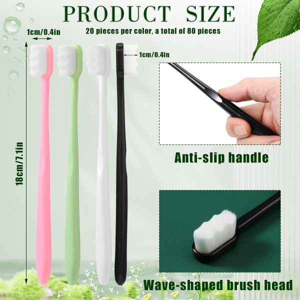 80 Pcs 7″ 4 Colors Extra Soft Toothbrush Bulk 20, 000 Soft Bristle Compact Micro Nano Manual Gum Comfort Toothbrush Oral Care for Braces Sensitive Teeth Recession