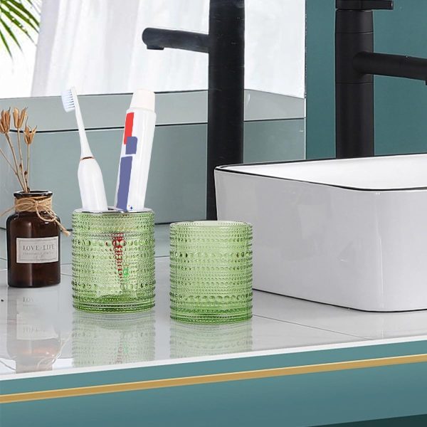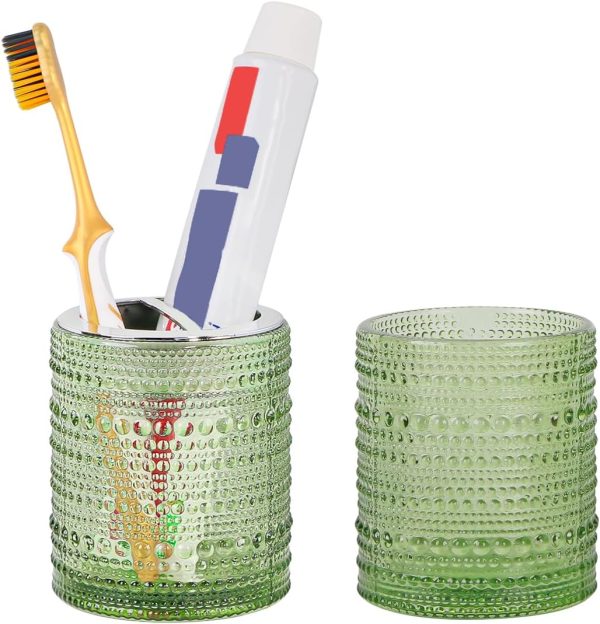 Toothbrush Holders for Bathrooms,Glass Toothbrush Holder,10oz Bathroom Tumbler and Mouthwash Cup,Bathroom Storage Cup for Tooth Brush,Toothpaste and Makeup Brush (Green)